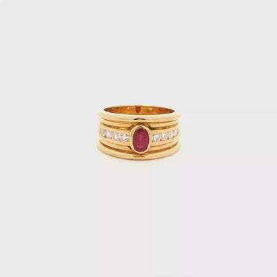 Anillo Ancho de Oro con Rubi Central y Brillantes